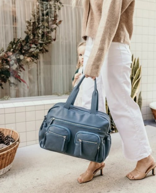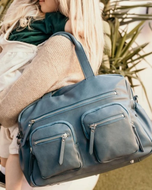 Faux Leather Carry All Nappy Bag - Stone Blue