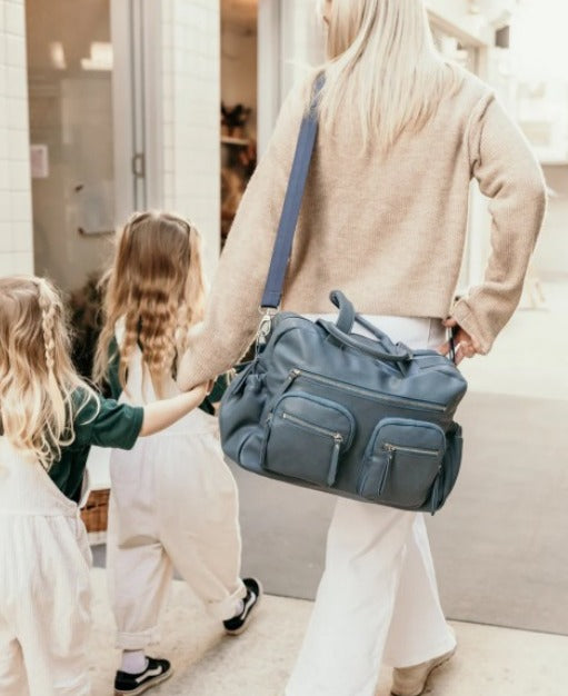 The stylish OiOi Stone Blue Faux Leather Carry All has been winning parents' choice awards for years and it is no wonder why! It is the most organised baby bag out there and oozes sophistication.